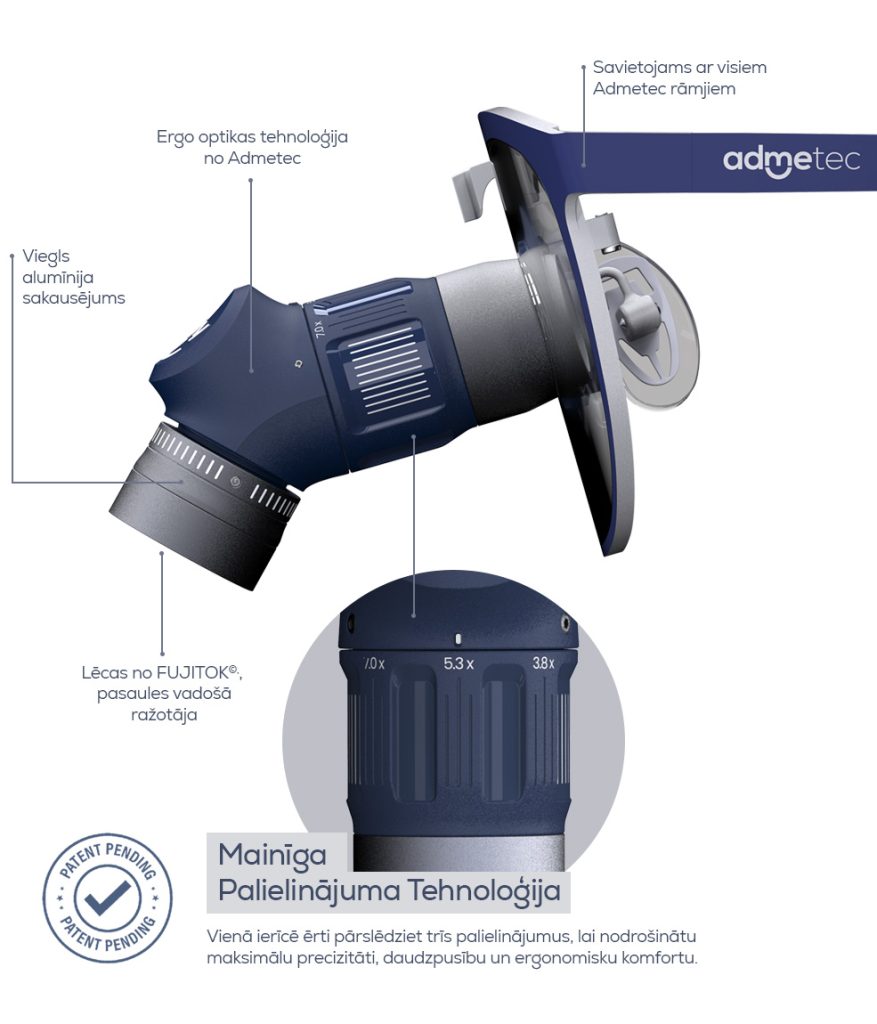 Iepazīstinām ar Ergo V™, patentēšanas procesā Latvijā — ergonomiskās lupas ar trim palielinājumiem vienā ierīcē.